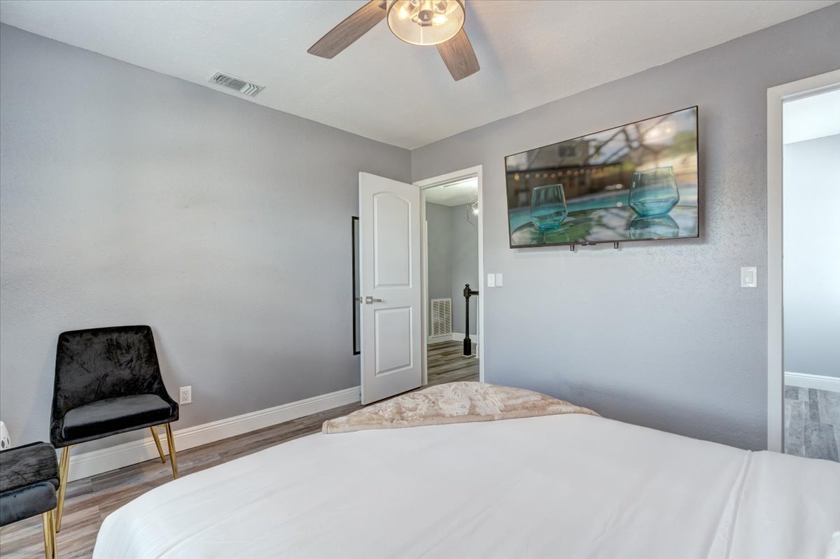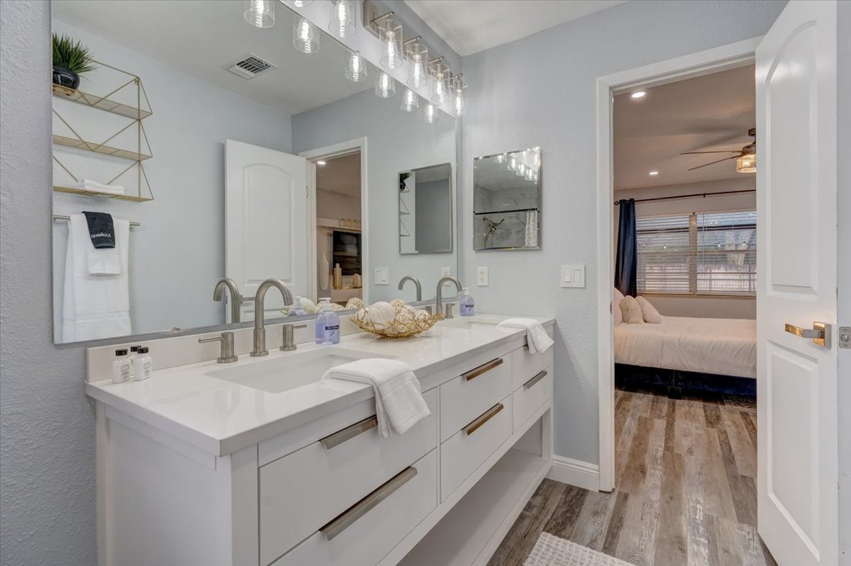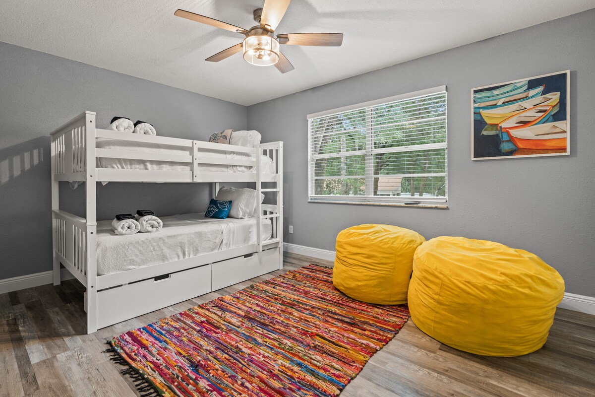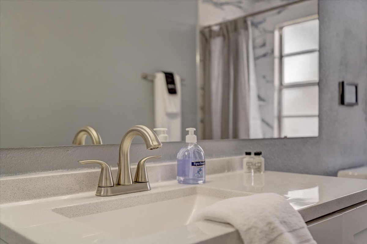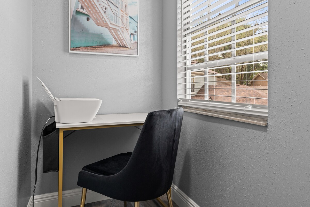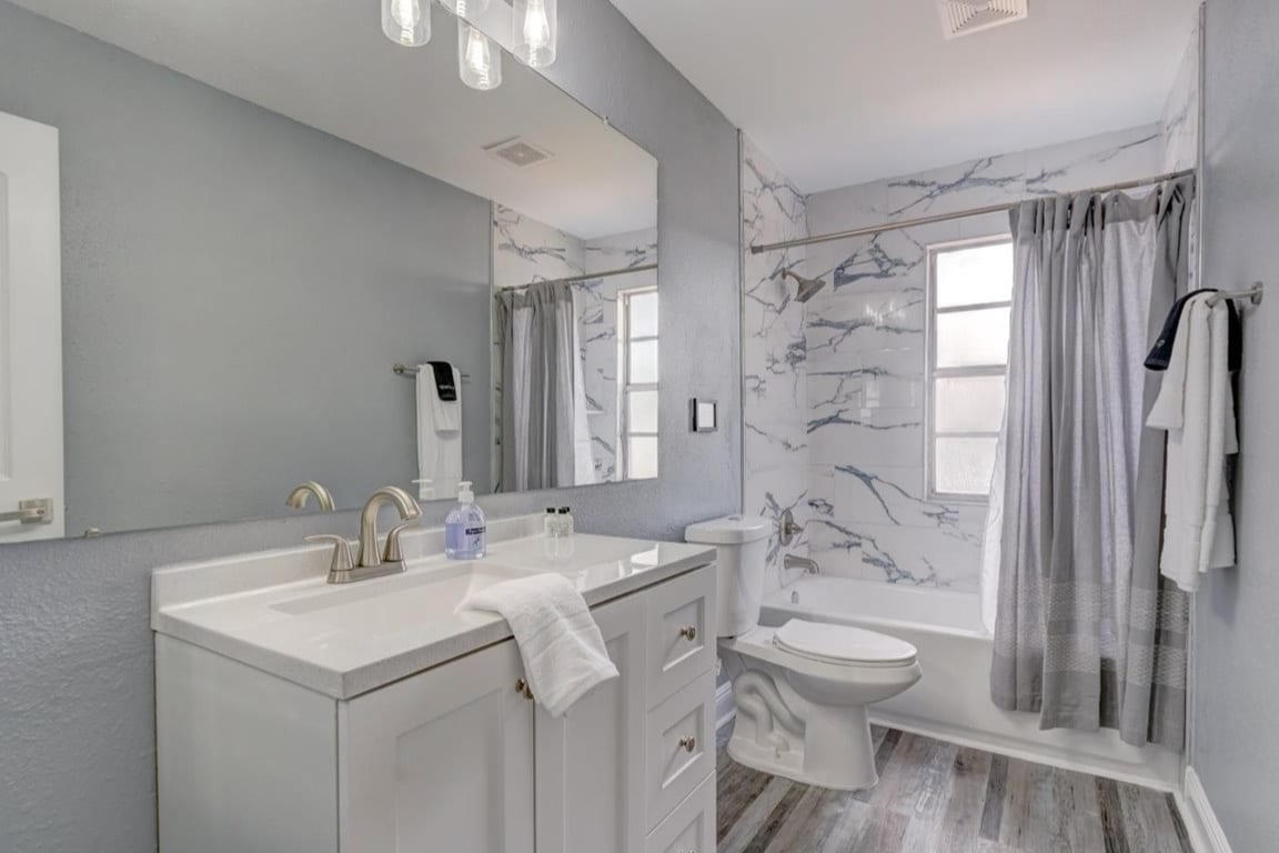 Step into our stunning ultra-modern interior, where contemporary décor and updated furnishings await you. The sleek lines and minimalist design of our Tampa vacation rental create a sophisticated ambiance that’s perfect for relaxation and entertaining. Hardwood floors lead you through the open concept living area, where natural light floods the space and accentuates the clean, crisp lines of our home’s architecture.