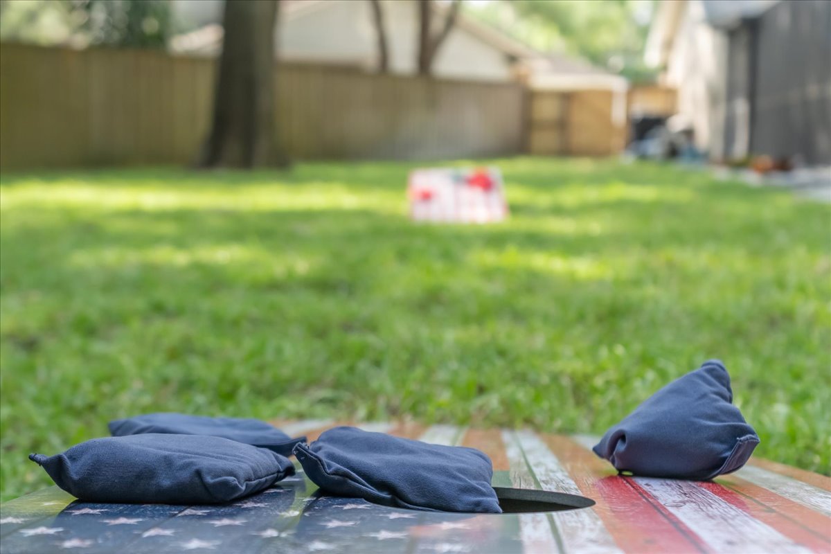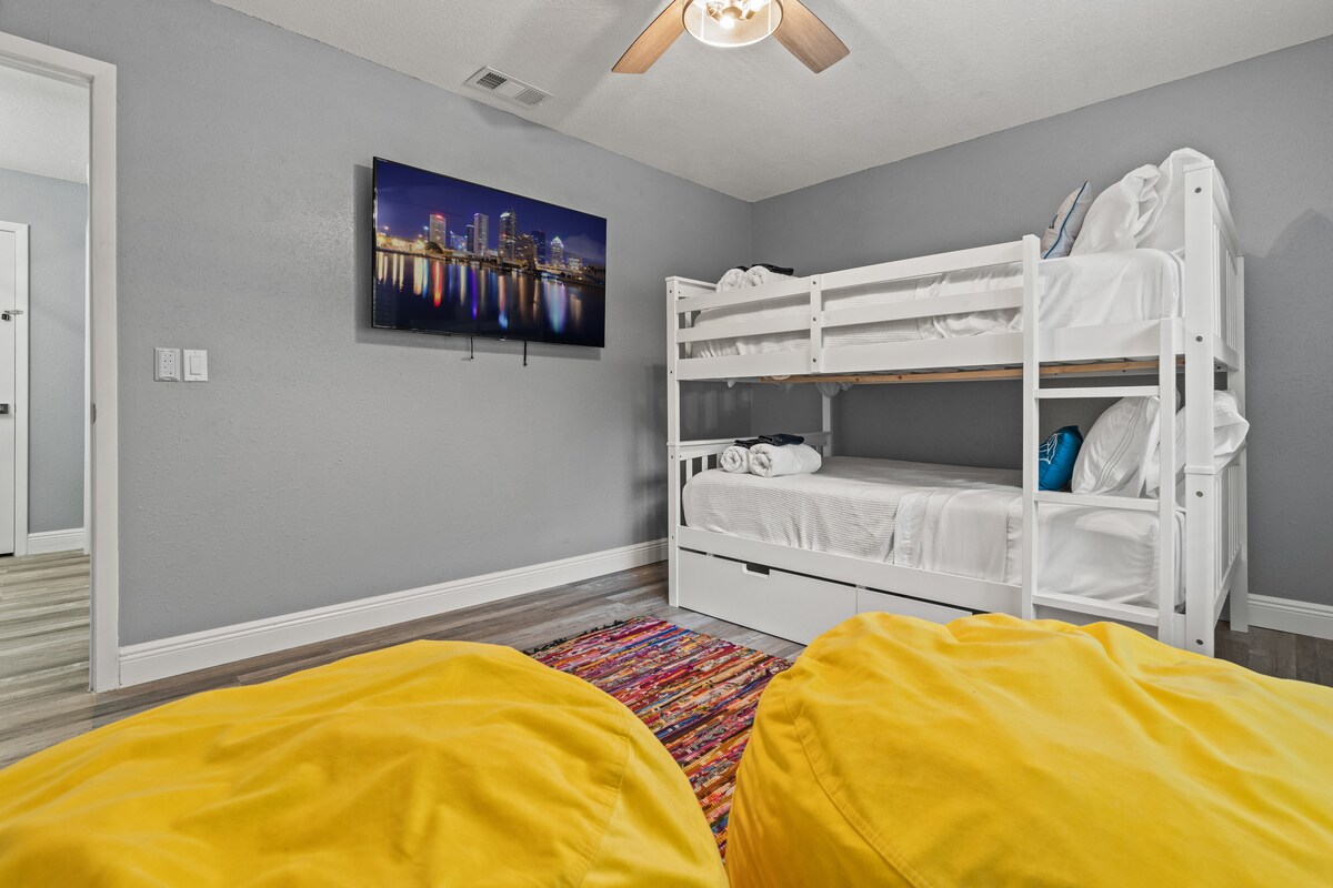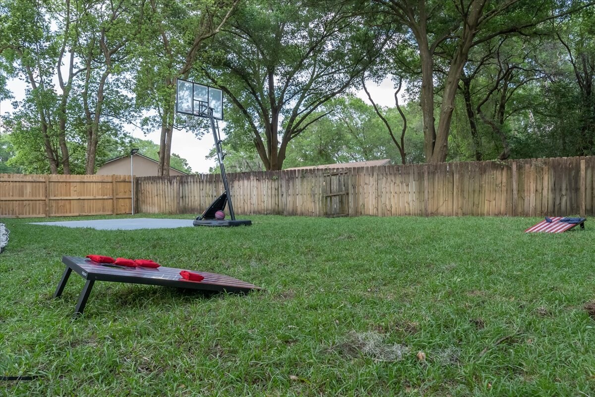 Welcome to our tropical 3 bedroom, 2.5 bathroom home in the heart of Tampa, Florida! Enjoy the ultimate vacation experience with our resort-style amenities including a sparkling pool, basketball court, and fire pit – perfect for entertaining family and friends. Our spacious backyard provides ample space to relax and unwind, while being only minutes away from Busch Gardens and Adventure Island. Come indulge in the Florida sunshine and make unforgettable memories!